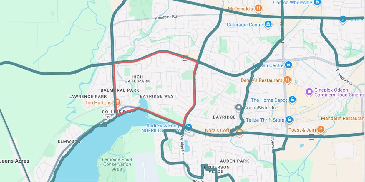 Bayridge West is one of Kingston’s more established west-end neighbourhoods, known for its quiet streets, mature trees, and strong sense of community. Unlike newer developments, this area has been built out for decades, giving it a more settled and lived-in feel.